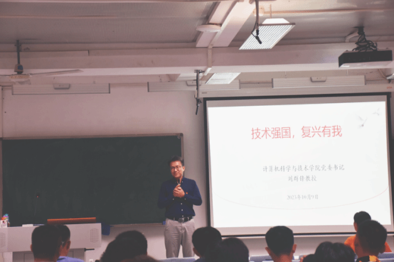 2023年10月9日下午,sunbet申博党委书记刘群锋在6F-501课室为2023级计算机类4-6班全体学生上了“思政第一课”。