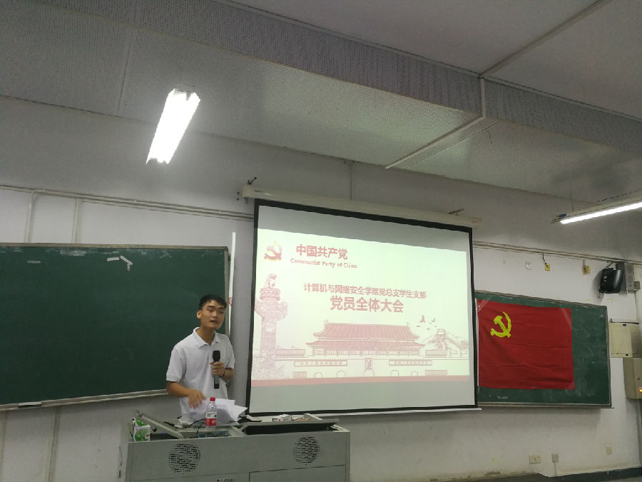 2018年10月18日下午15:00,sunbet申博党总支学生支部于7B410召开第二次党员全体大会,本次会议的主持人是学生党建办负责人蔡元俊同学,参与会议的人员是sunbet申博全体学生党员。