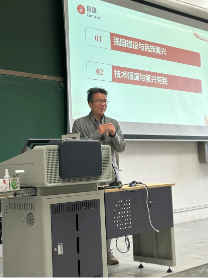 课程伊始,刘群锋提出了本次活动的主题——技术强国,复兴有我。本次课程分为两个部分:强国建设与民族复兴,技术强国与复兴有我。首先,在强国建设与民族复兴部分,刘群锋从“新时代十年与强国建设”“强国建设的首要任务”等内容的展开,充分论证了新中国从“站起来,富起来到强起来”的伟大飞跃;然后,在技术强国与复兴有我的部分,刘群锋从“人工智能的三起两落”切入,充分证明了新时代人工智能大模型发展的重要性;接着,在课程尾声,“AI时代该如何学习与教育”引发了学生的深刻思考,“拥抱先进工具,提升个人价值,服务国家战略”引发了学生的共鸣:最后,刘群锋以“请党放心,强国有我”的青春誓词结束了本次思政课程。