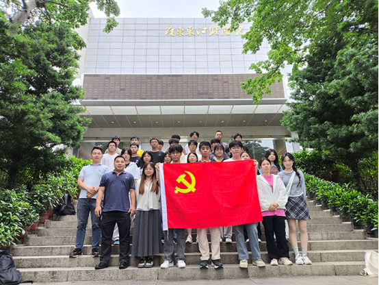 紧接着,师生们乘车前往活动第二站——广东东江纵队纪念馆,这是广东省当前规模最大、设置水平最高的抗日战争类博物馆。怀着对历史的敬畏之情,大家步入了这个充满历史瑰宝的地方。在纪念馆大厅内,邓武均带领全体党员庄严地重温了中国共产党入党誓词,进一步坚定了大家的信念和决心。
