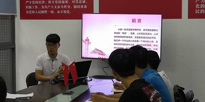 紧接着入党积极分子依次分享读书心得。有人通过科幻小说《宇宙坍缩》对未来社会的幻想,构想了中国社会的巨大变化;有人从小故事《谁动了我的奶酪》中感悟出人生哲理,希望我们能够时刻准备、勇敢接受、勇于挑战;有人从余华的《兄弟》,感悟出前进道路的重要性,依靠学习增强本领,依靠学习走向未来;有人从小说《红船映初心》中发掘“红船精神”,并以此激励我们不忘初心、牢记使命、继续前行……