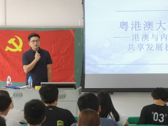 会议伊始,赵海峰老师介绍了当今粤港澳大湾区背景,指出粤港澳大湾区是国家发展战略,需要我们重视。他首先回顾了改革开放初期的粤港澳地区的发展历程,引出当今大力发展粤港澳大湾区的必要性。接着从三个大方面讲述了港澳地区如何与内地融合共享发展机遇:“港澳与内地需优势互补、互利共赢”并从六个方面说明港澳地区对内陆地区的带动作用。接着,从基础设施、创业就业等方面提出要“增进互联互通、增进港澳同胞获得感”。然后从长远合作方面指明要“确保港澳与内地融合发展行稳致远”。