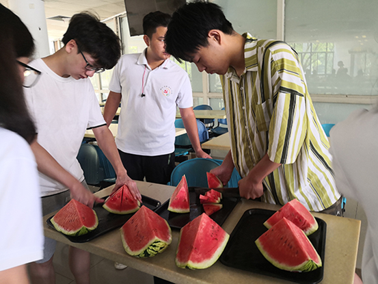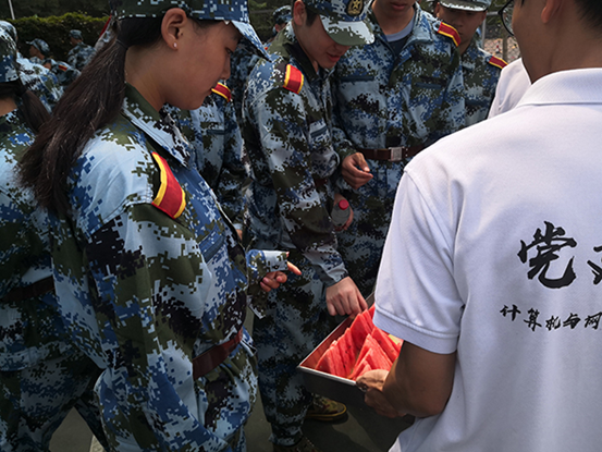 一大清早,我们sunbet申博党建办的工作人员就提前为新生准备了香甜可口的大西瓜,冰镇的大可乐,待得大一新生在体育馆军训的休息时间,过去送上我们的一份清凉。期间,我们的工作人员与教官经历了一番沟通之后,同意了由党建办的陈晓展同志作为代表发言讲话,鼓励新生,坚持下去,努力完成军训,并且向新生介绍宣传党建办,希望到时候部门招新时大家能够踊跃报名加入党建办的大家庭。最后,由我们党建办的工作人员清理现场,并进行合影留念,为本次送清凉活动划上一个完美的句号。