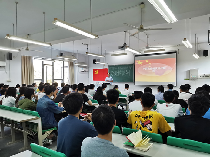 培训伊始,黄辉老师以伊朗,古巴,英国,美国等国家为例,讲述了政党制度的由来以及中国政党制度的优越性。随后,黄辉老师表明中国共产党是中国特色社会主义的领导核心,是最高政治领导力,处在总揽全局、协调各方的地位。