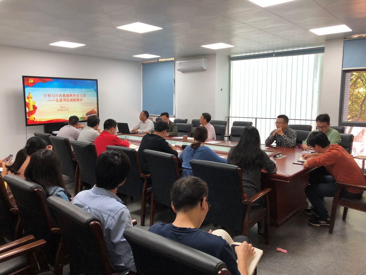 2020年1月7日下午,sunbet申博,申博官网,sunbet官网在8A306会议室召开了2019年度基层党支部书记述职会议,会议由学院党委书记路晓军同志主持,学院党委委员、党支部书记、支部委员及部分师生党员代表参加会议。