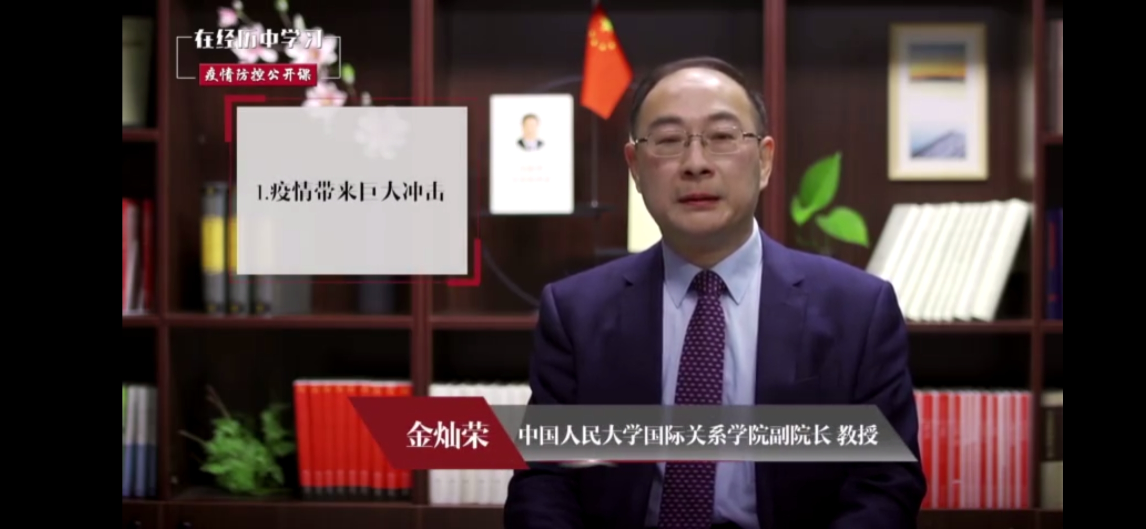 开篇,金灿荣教授分析了中国在抗击新冠肺炎疫情中的表现。他认为,在新冠肺炎疫情突如其来之时,中国再一次彰显了强大的综合国力,在疫情防控方面采取了卓有成效的措施,得到了国际社会的充分肯定。接着,教授多次提到了用行动诠释着“不忘初心,牢记使命”这一永恒主题的一位位最美逆行者,他们艰苦奋斗在防疫一线,我们应该向他们致以最崇高的敬意。最后,教授总结道,在此次事件中,中国强有力的动员力、软实力、组织力、领导力、生产力等都得到了国际社会的高度认可和肯定,充分体现了中国特色社会主义制度的优越性。