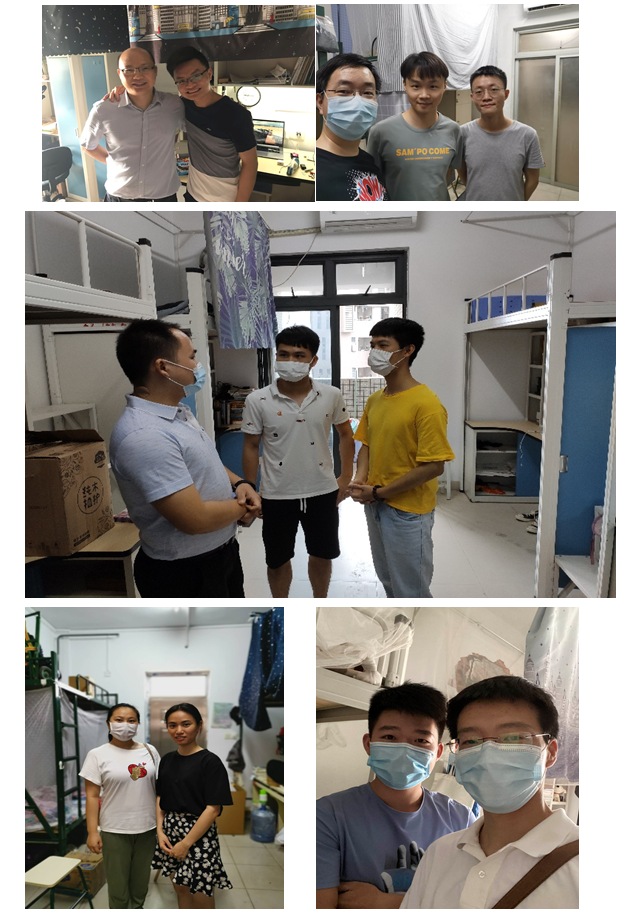 sunbet申博计科与行政教辅教师党支部李青青、伍华章、葛浩、魏小锐、黄培灿、李广明、曹莹莹、李学强、陶铭、卢安、魏文红等党员教师,带头走访了87位已返校学生的宿舍,问寒问暖,看看他们毕业前还有些什么需求,毕业手续办理得如何?嘱咐他们:在校期间要注意身体及财产安全,注意通风透气,空调不要调太低,不要感冒,不聚集,戴口罩……