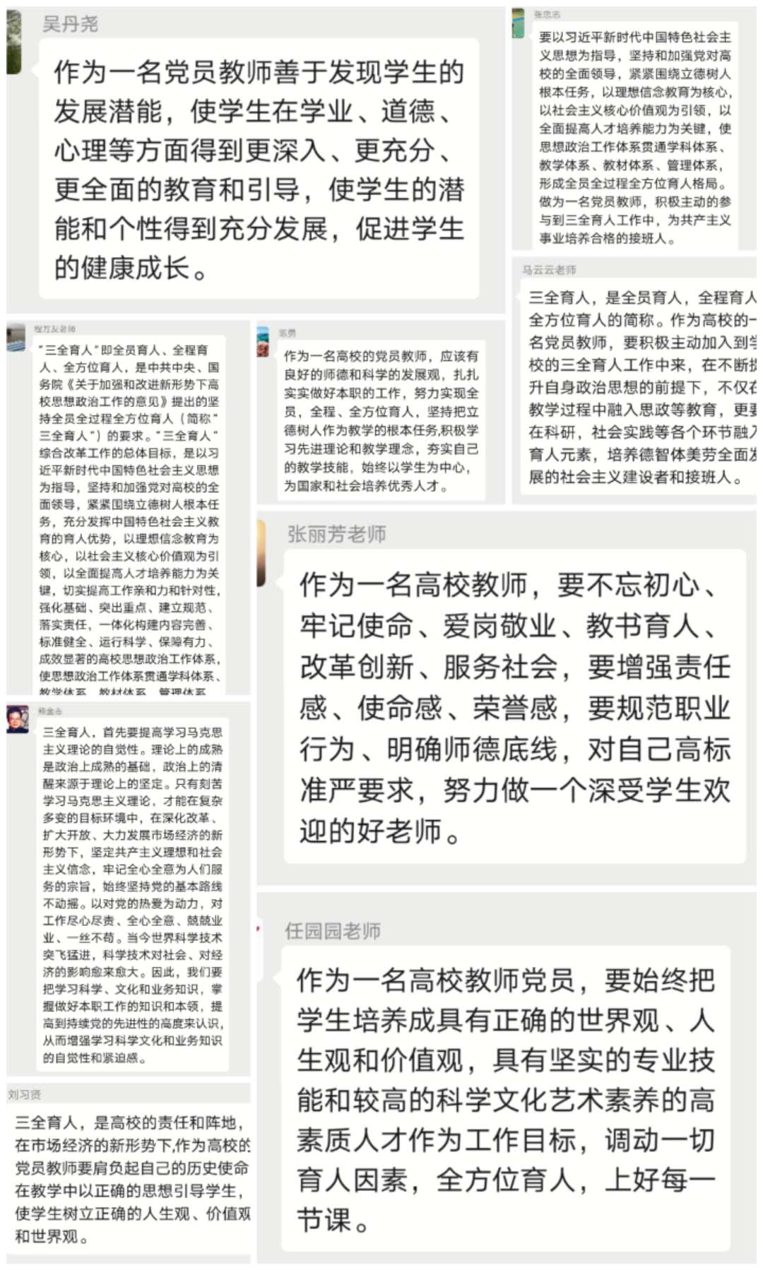 2020年6月21日,sunbet申博公共教学教师支部再次通过“微信”社交平台组织开展了以“落实‘三全育人’,建设一流本科”为主题的“云党日”活动。每位党员就落实‘三全育人’发表自己的看法和措施, 为建设一流本科献言献策。