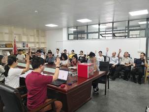 本次会议首先进行了党支部书记及支委委员补选,选举卢安为支部书记,曹莹莹为支部副书记兼组织委员,安璇补选为青年兼文体委员,研究生党小组正副组长分别为安璇和王若羽。然后对研究生入党积极分子名单进行表决,全体举手表决通过了如下名单:付有才、张婷、房欢欢、王家梁、杨锦和韦鑫。