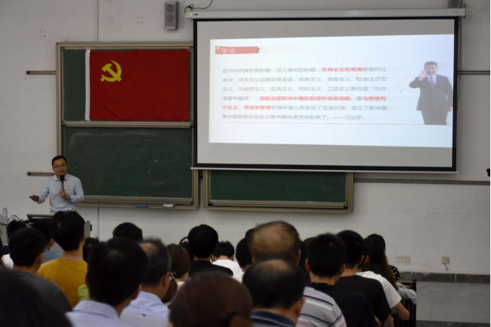 会上,路晓军书记提出,今年是建党一百周年,作为一名党员更应加强党史学习力度,增强党员意识,从而强调了党史学习的重要性。随后,由马克思学院毛安翼博士进行讲授。毛博士就新民主主义革命史及其经验启示和学高为师、身正为范两个主题展开演讲,首先,毛博士讲述了从洋务运动到新文化运动的四个批判,分析了旧民主主义革命的进步性和局限性,同时指出,这些批判并没有解决中国的民族危机问题。随后,毛博士通过分析党从北伐战争、土地革命到抗日战争等革命中重要的人物事件,强调了中国共产党在新民主主义革命中无可替代的作用。