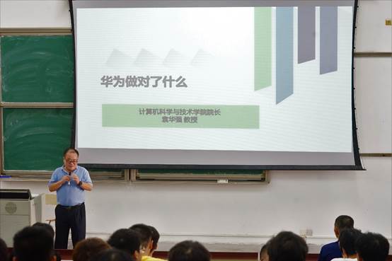 袁华强院长主要从“美国对中国的攻击”“华为做对了什么”“放弃幻想、准备斗争”三个方面与同学们作交流分享。