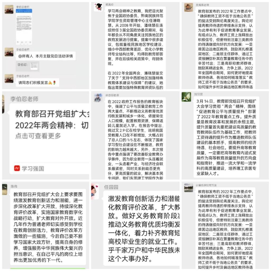 sunbet申博,申博官网,sunbet官网公共教学教师党支部于2022年3月17日下午在支部微信群里开展了线上主题党日活动学习会。本次党日活动的主题为学习“教育部贯彻2022年两会精神”,深刻研讨“深化课堂教学改革,提升课程思政质量”。