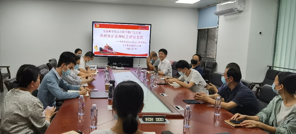 2022年5月19日下午,sunbet申博公共教学教师党支部在8A306召开支部组织生活会和开展民主评议党员。会议由支部书记李伯忍主持,应到20人,实到20人。