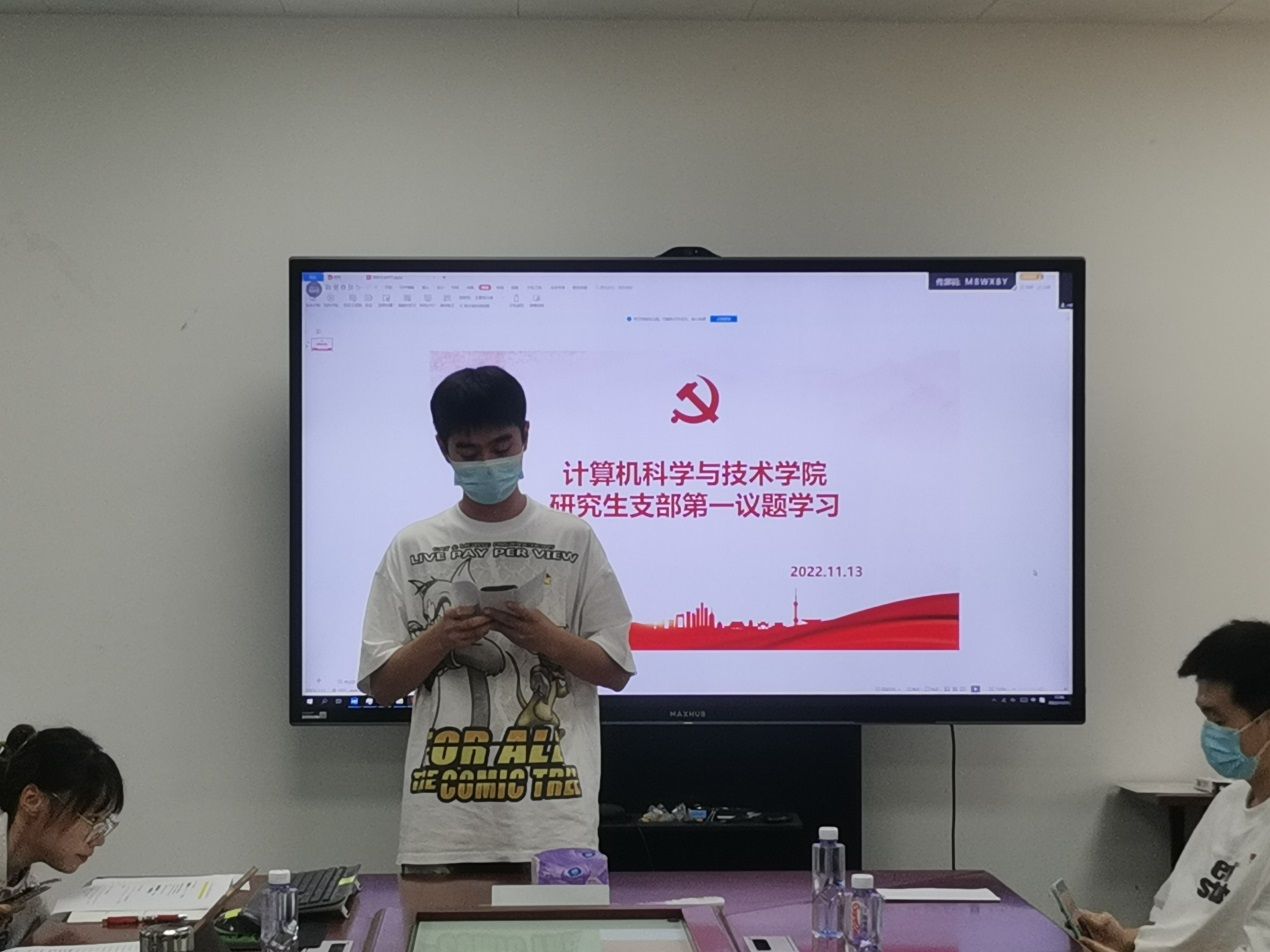 2022年11月14日晚上20:00,sunbet申博,申博官网,sunbet官网研究生党支部于8A306组织召开研究生党支部“学报告 悟思想 谈体会 见行动”主题党日活动。本次大会由研究生党支部书记王若羽主持,研究生党支部全体同志参与了此次党日活动。