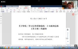 首先,支部书记李伯忍同志组织党员同志指出,学习宣传贯彻党的二十大精神是当前和今后一个时期全党全国的首要政治任务,为深入学习宣传贯彻党的二十大精神,全力推进新型高水平理工科大学建设,按照中央决策部署和省委、教育部党组工作要求,根据省市有关通知安排,制定了《学习宣传贯彻党的二十大精神总体工作方案》。