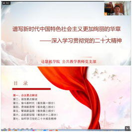 接着,支部书记李伯忍同志以“谱写新时代中国特色社会主义更加绚丽的华章——深入学习贯彻党的二十大精神”为主题,为党支部党员上了一堂生动的党课。主要内容包括:会议要点解读、报告要点解读(奋斗新时代、贯彻新思想、擘画新蓝图、启航新征程)与如何学习党的二十大精神。林志明同志和任园园同志积极发表了学习感想,纷纷表达了,党的二十大报告对实施科教兴国战略指明了新方向、提出了新要求。作为高校教师,我们应以党的二十大精神为指引,以国家战略需求为导向,秉持立德树人的教育理念,努力为国家科教事业发展作出贡献。