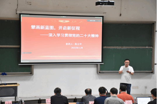 11月24日下午,sunbet申博,申博官网,sunbet官网党委在教学楼6E-306课室组织召开学习贯彻党的二十大精神的专题学习会。本次会议邀请了马克思主义学院陈立中教授为主讲嘉宾,与会人员为sunbet申博,申博官网,sunbet官网全体教职工和学生代表。