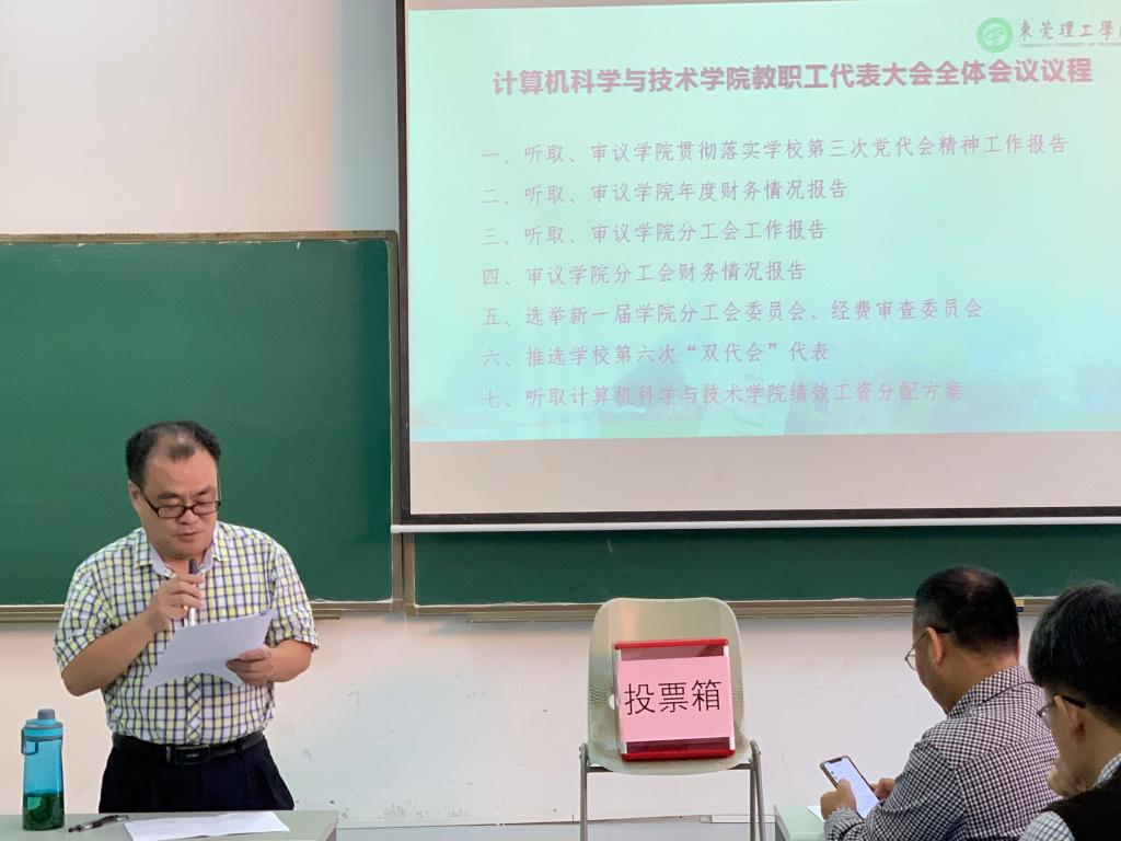 1128日下午,sunbet申博,申博官网,sunbet官网在6D103召开教职工代表大会,听取审议学院发展报告和财务报告,工会工作报告和经费开支报告,选举产生工会主席和委员,推选学校“双代会”代表,圆满完成各项议程,充分发挥教代会参政议政、民主管理功能。学院全体代表出席大会。