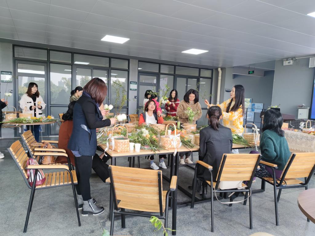 为了缓解我院女教工的工作压力,陶冶大家的艺术情操,让大家的在快节奏的生活当中放慢脚步来发现美,欣赏美,创造美,享受美。12月3日下午,我院女教工在我院妇女小组长余馥凝的带领下开展了一场名为:“与花相伴,快乐常在”的主题花艺沙龙。