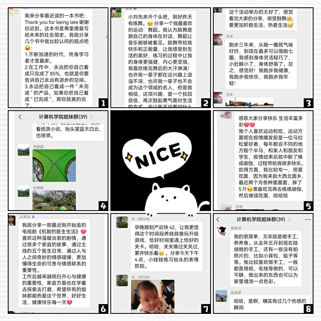 通过此次云分享活动,让大家更好的了解彼此,很好的促进了同事间的感情,增进了学院的凝聚力,妇女是半边天,我们学院的女教师在学院的各项工作中积极地发挥着自己的作用,为学院高水平发展贡献自己一份力量。