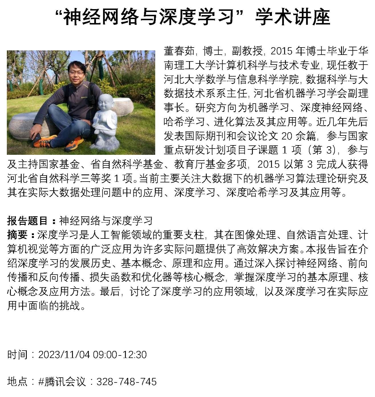 学术讲座【“神经网络与深度学习”学术讲座】