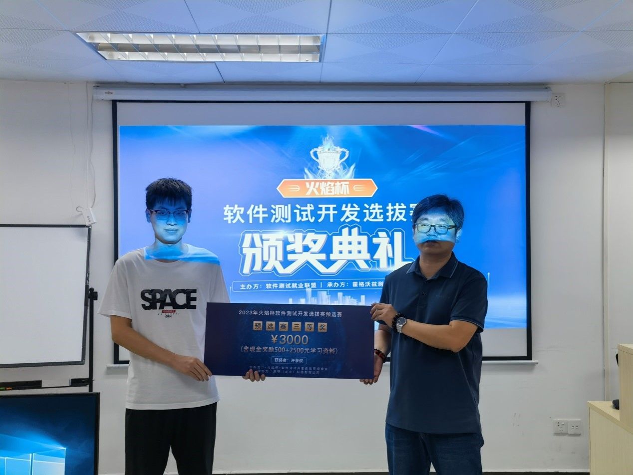10月10日下午,由软件测试就业联盟主办的第四届“火焰杯”软件测试高校就业选拔赛颁奖典礼在9A206举行。本次比赛邀请了测吧(北京)科技有限公司项目总监王雪冬、sunbet申博,申博官网,sunbet官网副院长刘文果和sunbet申博,申博官网,sunbet官网软件工程系主任张福勇为获奖同学颁奖。