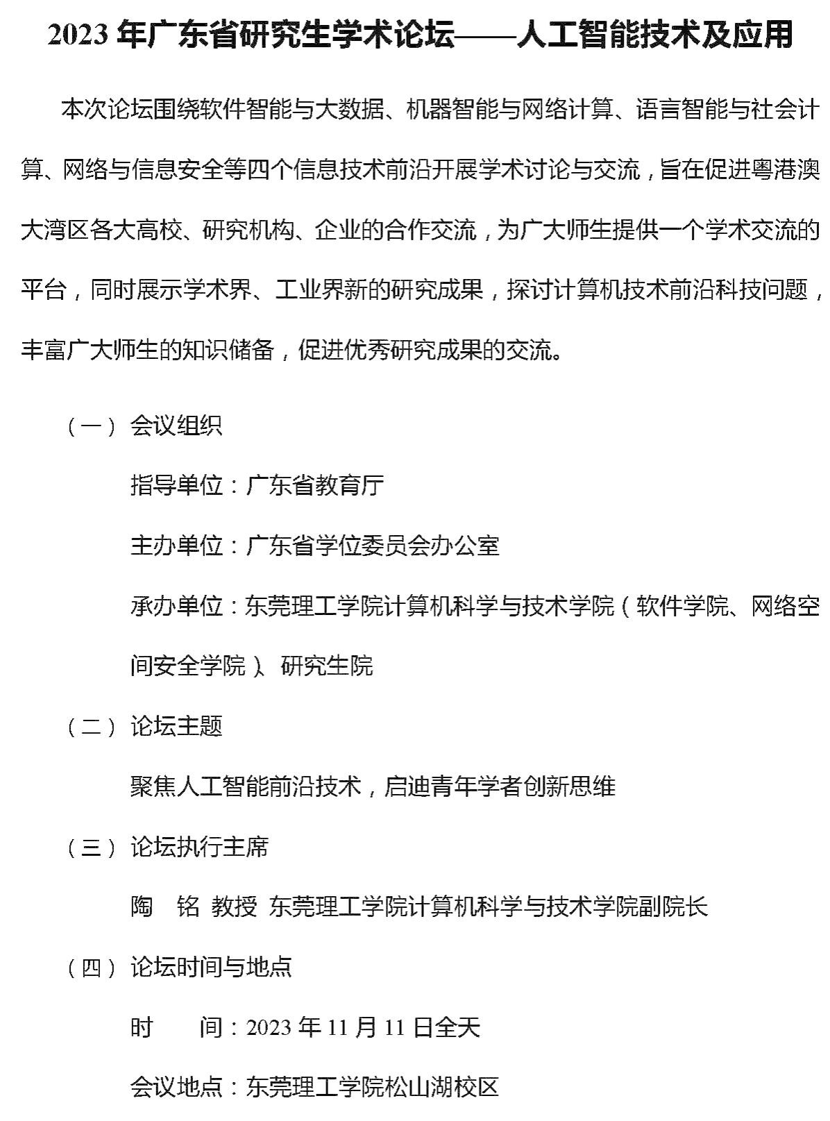 学术讲座【2023年广东省研究生学术论坛——人工智能技术及应用】
