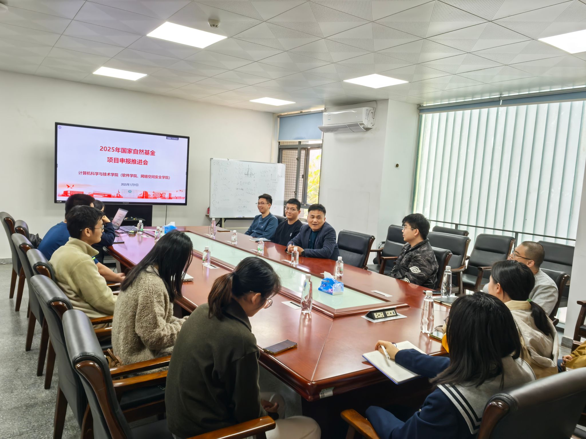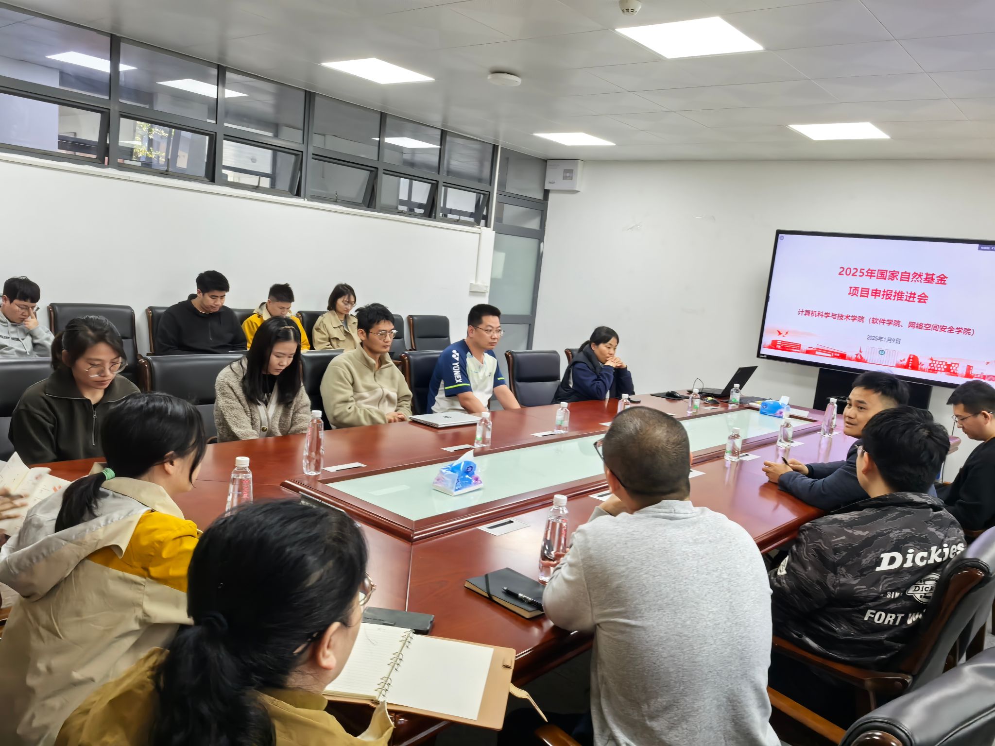 2025年1月9日下午,计算机学院在8A306会议室举行第三轮2025年国家自然科学基金申报推进会,学院副院长陶铭教授主持推进会,学院部分教师参加了会议。