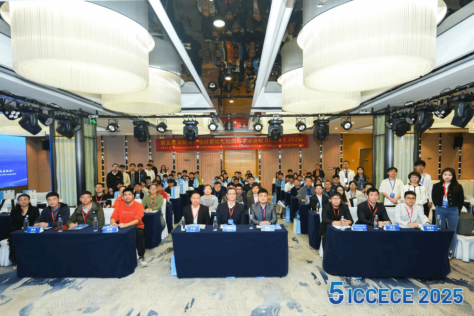 他回顾了消费电子与计算机工程领域近年来的突破性进展,强调了国际学术合作对技术创新的重要意义,并展望了人工智能、边缘计算与物联网融合发展的未来趋势。致辞结束后,全体与会嘉宾于主会场内合影留念,定格这一学术盛会的历史性瞬间。