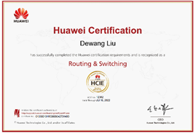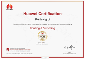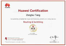 HCIE-Routing & Switching,培训与认证在数据通信领域具备大中型复杂网络规划设计、部署、运维及优化能力的网络技术专家,其认证通过可掌握大中型复杂网络特点和技术发展趋势,具备基于大中型企业应用独立规划设计、部署、运维和优化的能力,实现网络的高扩展、高安全和高效,支撑企业所需的语音、无线、云和存储等应用的全面集成的能力。
