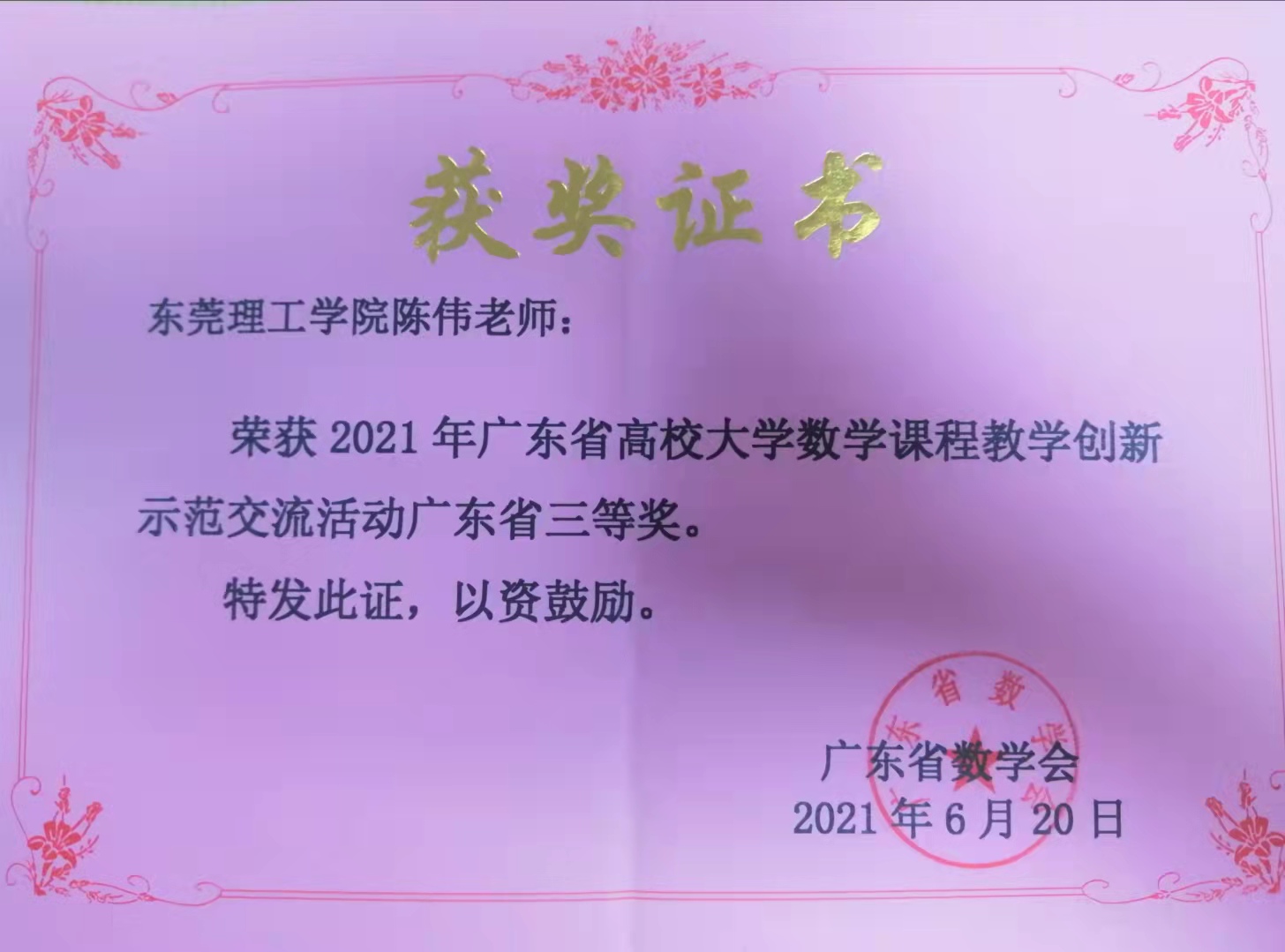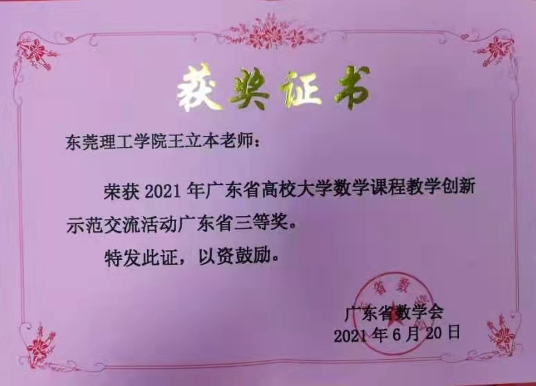 首届全国高校大学数学课程教学创新示范交流活动广东分赛暨广东省高校大学数学课程教学创新示范交流活动近日圆满落幕,我院数学教学团队参赛教师陈伟和王立本喜获佳绩。高等数学课程组陈伟老师获副高组三等奖,工程数学课程组王立本老师获中级组三等奖,sunbet申博获得优秀组织奖。