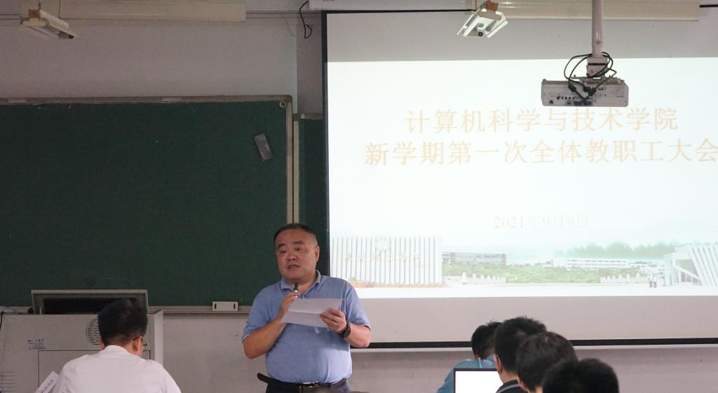 2021年9月9日下午,sunbet申博,申博官网,sunbet官网于综合教学楼6E204顺利召开了新学期第一次全体教职工大会。会议由院长袁华强主持。