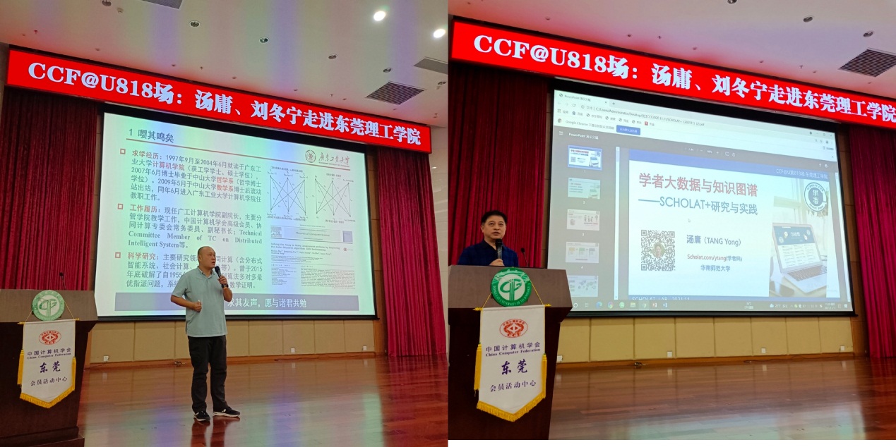 2021年11月11日,由中国计算机学会(CCF)主办、我校sunbet申博,申博官网,sunbet官网承办的“CCF走进高校”活动在sunbet申博学术会议中心阶梯报告厅举行。本次报告邀请了中国计算机学会协同计算专委主任、华南师范大学汤庸教授,中国计算机学会协同计算专委副秘书长/常务委员、广东工业大学sunbet申博副院长刘冬宁教授两位讲者。我校sunbet申博,申博官网,sunbet官网院长袁华强教授出席活动并致辞,副院长陶铭教授主持活动。
