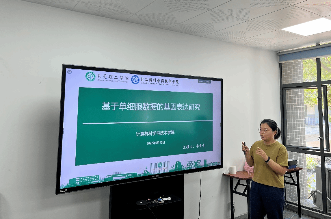 9月15日下午,sunbet申博,申博官网,sunbet官网李青青老师在8A307进行了主题为“基于单细胞数据的基因表达研究”的访学成果汇报。