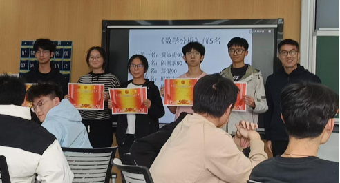 陈老师逐一为获奖学生颁发定制奖状,并结合个人学习经验进行点评。现场掌声不断,班级还特别安排合影环节,记录下学子们手持奖状的自信笑容。班会上,陈伟老师肯定班级整体学业表现,鼓励未获奖同学保持信心,强调“大学学习贵在持续发力”。