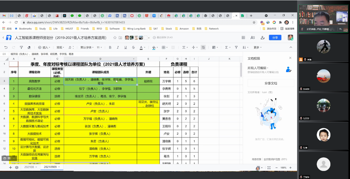 2021910日晚,人工智能系召开了9月第2次全体会议(线上腾讯会议ID488 888 053),全体教师出席,会议由卢安主持,主要讨论了以下两个方面的内容:教学大纲的审核、人工智能系相关的核心课程建设任务及人员调整。