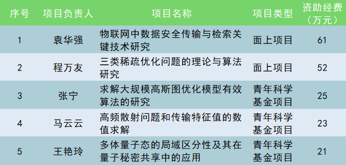 我院具体立项情况为:袁华强教授和程万友教授分别获得面上项目,张宁博士、马云云博士和王艳玲博士分别获得青年科学基金项目。