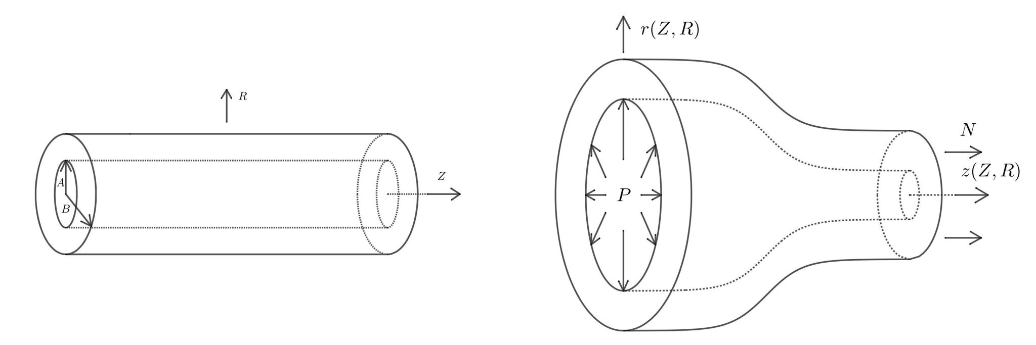 超弹性圆管是现代工程和日常生活中经常使用的结构,在机器人和生物医学领域更有广泛的应用前景。受均匀内压时,超弹性圆管会发生局部起鼓(图1)。生活中常见的气球不规则变形以及人体中动脉瘤的形成都可以看作是圆管起鼓问题。为简化计算,人们通常将圆管看作是零厚度的薄膜圆管。但在一些实际问题中,如动脉瘤的形成,管壁可能是中等甚至较大厚度,因此有必要考虑有限壁厚充气圆管的起鼓问题。