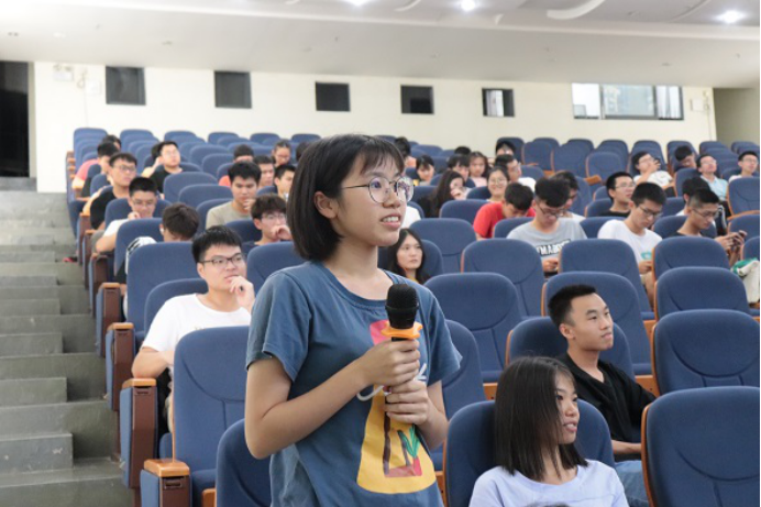 会议伊始,主持人上台介绍此次会议的大概流程。然后,邀请梅侠峰学长上台分享考研经验。学长说考研人数会越来越多,考研的难度会越来越大;然后,学长强调英语作文的字要好看;政治的选择很关键,大题只要是个合格公民就能过关;数学要有一本错题本,专门记录不会的题,避免遗忘;英语复试的时候坐姿要端正,心态要稳住,不要让面试老师知道你很紧张。接着,许维恭学长上台指点迷津。学长说考研是一种趋势,因为人越来越多,以及要认识到就业的压力远远大于考研的压力;考研前一定要判断自己是否有决心坚持下去,如果没有决心不要考研;学长强调了数学千万不要花大把时间做教材的题目,要在实践中学习,学习中实践,这样才能高效学习数学;英语复试时口语非常重要,老师会用英语提问。紧接着,到了会议的最后一个环节,同学们向学长们提出问题,学长都一一详细解答了。