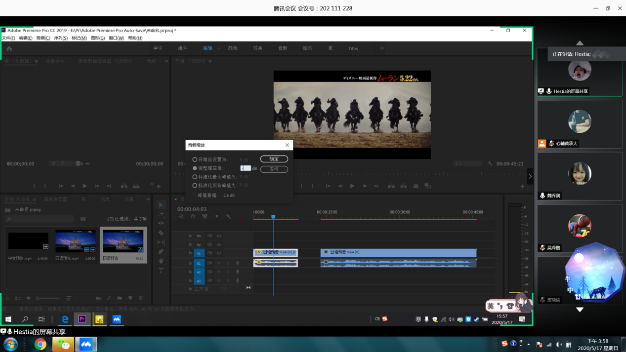 2020年5月17日,sunbet申博,申博官网,sunbet官网心理辅导站联合学院媒体运营部和网络技术部举办关于“视频拍摄技巧和PR视频剪辑基础”的培训在网络上顺利举行。本次培训旨在提高大家参与5·25心理健康活动月系列比赛的热情,达到以赛促学、知行合一的目标。
