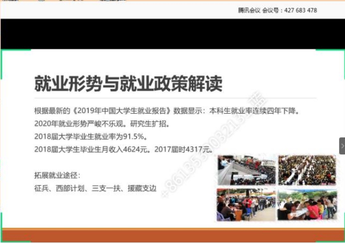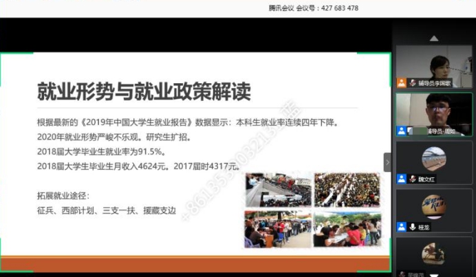 袁院长号召同学们增强“四个意识”,坚定“四个自信”,做到“两个维护”,坚决打赢疫情防控攻坚战的同时,解析当前全国大学生就业的整体形式和就业压力,鼓励同学们把握好个人求职就业、人生发展的新方向。
