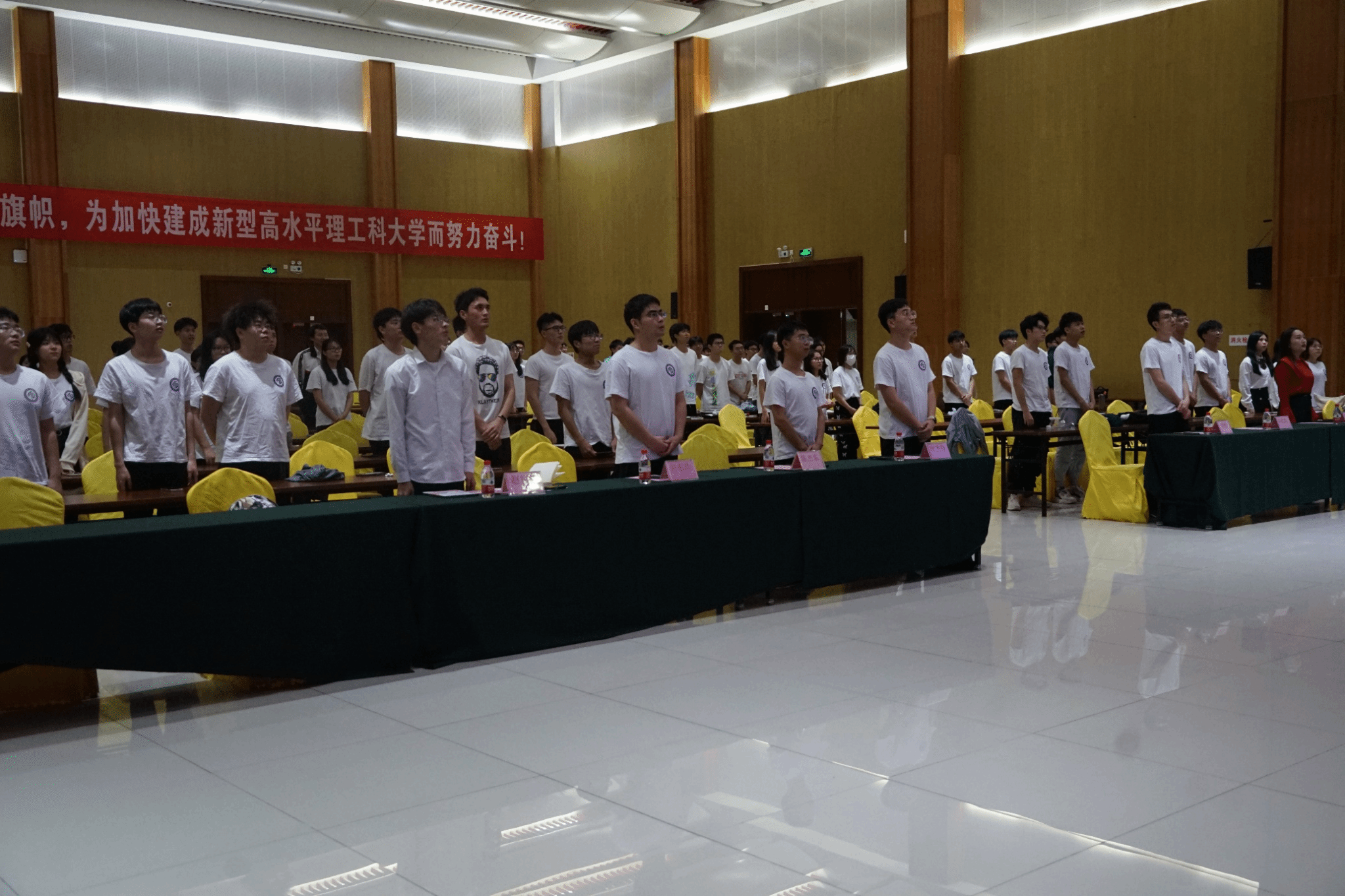 其次,颜彪老师进行党的二十大报告主题领学。颜老师从党的二十大召开背景、二十大报告的主体内容展开领学,并结合二十大报告出现的金句呼吁同学们“党有号召、团有行动”、党旗所指就是团旗所向。与会同学聚精会神、备受鼓舞。