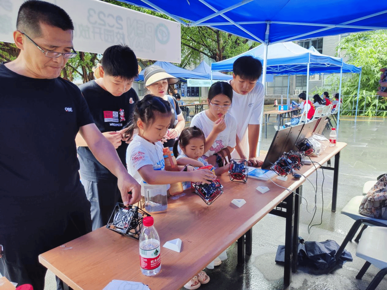 学院精心准备“创新、创意、创造、创业”四创作品展,通过浓缩凝练的宣传展架,向来访家长和学子展现了学院蓝桥杯大赛及获奖情况、计算机设计大赛获奖项目、“互联网+”和“挑战杯”项目等资料,同时展示了基于红外热成像技术的消防侦察灭火机器人、基于机器视觉的自主导航湖面垃圾回收无人艇、物联网智慧排程柔性制造系统等研究成果,很好地呈现了学院专业特色和人才培养成果。