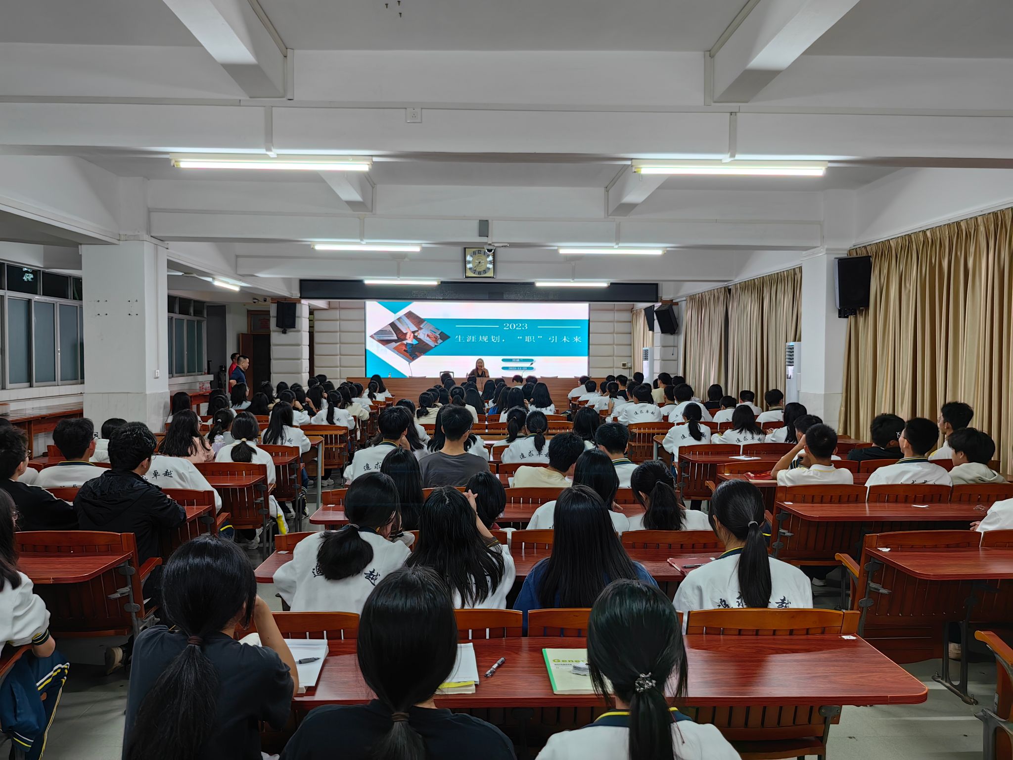 两天的时间里,学院招生小组一行6人,分别走访了茂名市信宜中学、信宜一中、高中中学、高州一中、高州二中、高州四中等多所中学,为每所中学送去关于2023级本科生录取的喜报,同时就学校校史校情、师资力量、办学特色以及sunbet申博的专业设置、毕业生就业情况等展开交流。为引导高中生生涯规划意识的觉醒,招生员田盛兰为信宜中学高三年级的同学们送去课程《生涯规划,“职”引未来》,在场同学聚精会神、认真聆听。