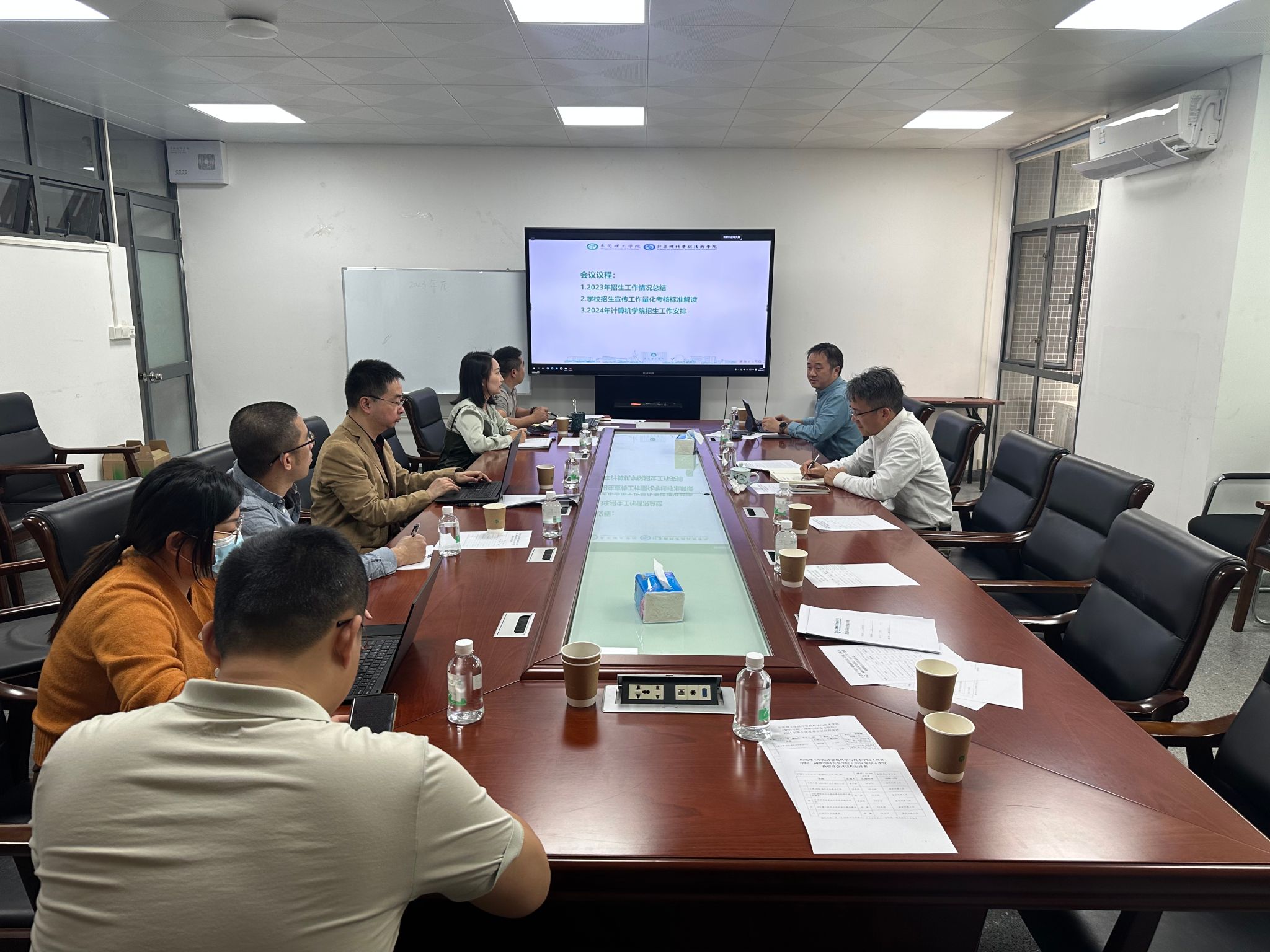 会上,刘文果副院长首先总结了学院2023年招生宣传工作情况,感谢工作小组成员过去一年对我院本招工作的辛勤付出;然后结合学校2024年招生宣传量化考核标准,对学院2024年招生工作安排做出部署。刘文果副院长重点提到,针对去年的不足,今年要在“送课进中学”方面加大工作力度;要大力发挥优秀校友资源、充分调动专任教师力量,多渠道开展招生宣传,提升学院的知名度和影响力。