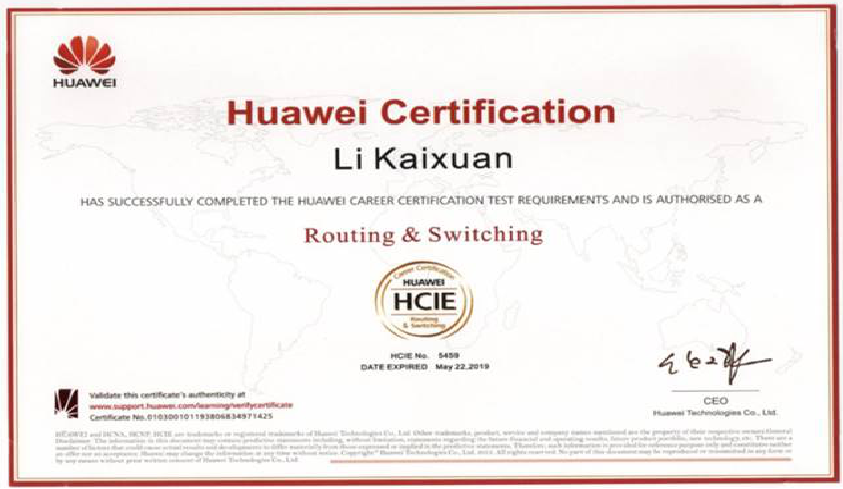 近年来,sunbet申博华为信息与网络技术学院师资培训和学生考证通过率一直位居全球前列,部分学生取得了华为最高级别的HCIE认证。