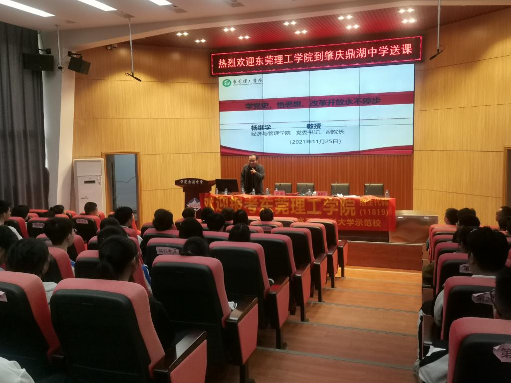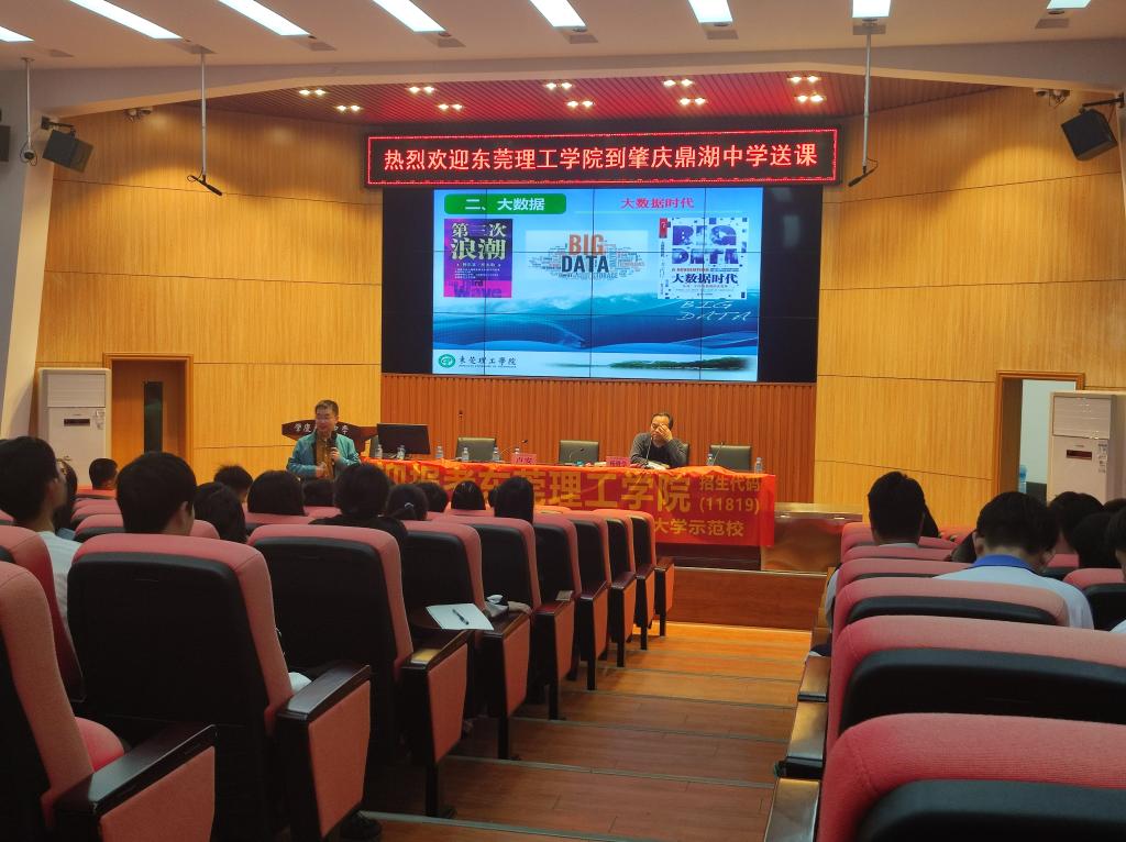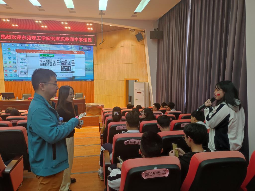 为进一步加强我校与优质生源地的联系,11月25日下午,我院党委书记路晓军、人工智能系主任卢安、学工办主任邓武均协同经济与管理学院党委书记杨继学、学校招生办公室科员师娜前往肇庆市鼎湖中学开展“送课进中学”活动。
