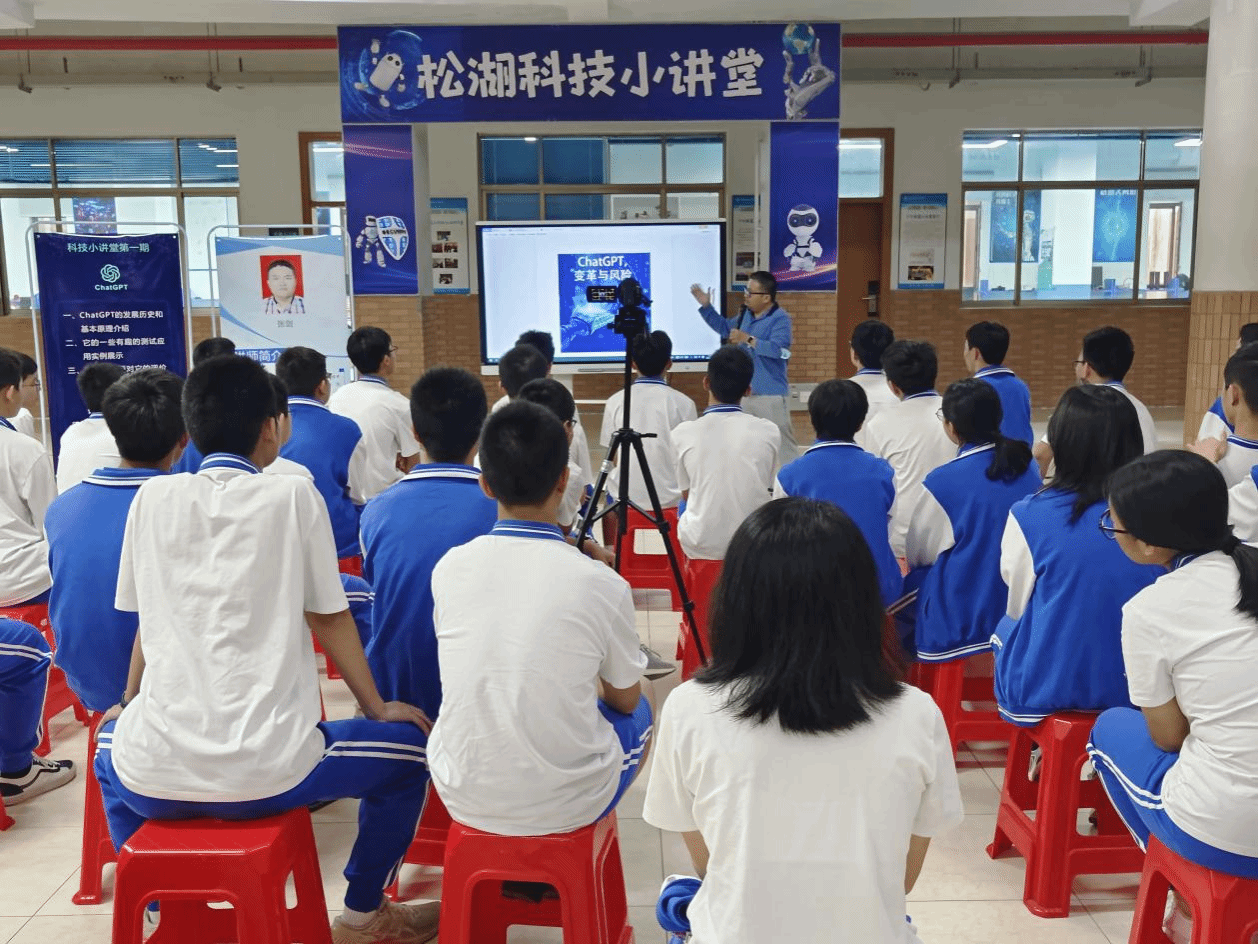 首先,邓武均老师代表学院向东莞中学赠送学校2022年本科招生简章、招生手册及高考志愿填报指南等招生宣传资料,并播放学校招生宣传片。其后,张剑老师进行“ChatGPT,变革与风险”主题授课。张剑老师从ChatGPT的发展历程和基本原理、测试应用实例、对工作生活的影响以及sunbet申博NLP组的研究内容与ChatGPT的关联几方面展开分享,同时穿插介绍sunbet申博,将招生宣传工作与科技讲座进行融合,形式新颖,寓教于乐。在场学生聚精会神、兴趣盎然。