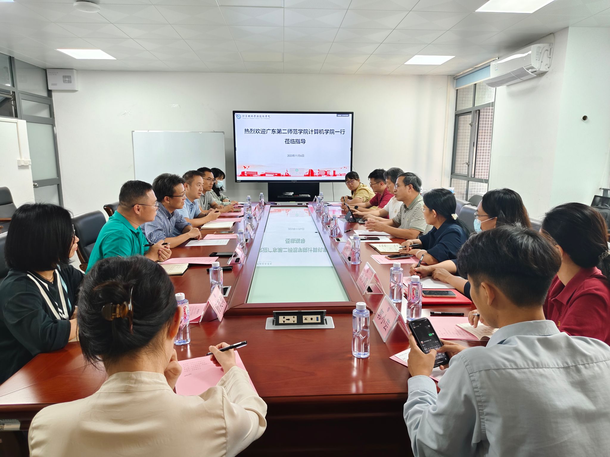会上,刘群锋书记介绍了我院校企合作与实践基地建设经验、大学生参加各类创新创业活动的激励机制并解读了计算机科学与技术专业的招生政策,强调了本学位点的教育特色、培养条件和招生政策,广东第二师范学院的领导和老师对我院研究生办学情况得到充分的了解。