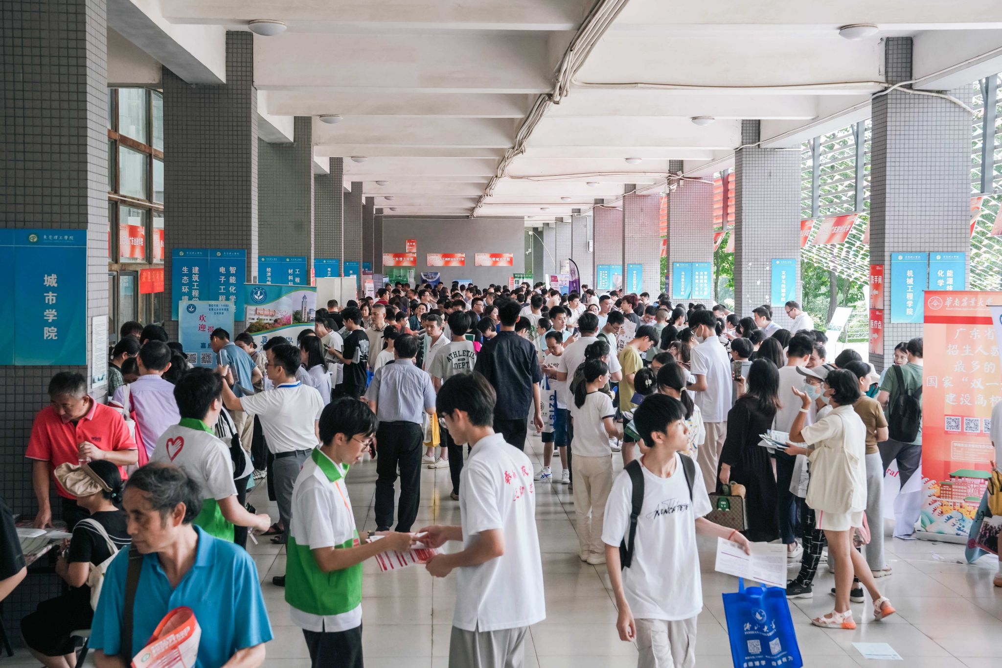 22日上午,学校松山湖校区礼堂人声鼎沸,来自市内外40余所高校的师生热情洋溢地向参加开放日的家长、考生派发招生宣传手册,并耐心介绍招生计划、招生政策等资讯。